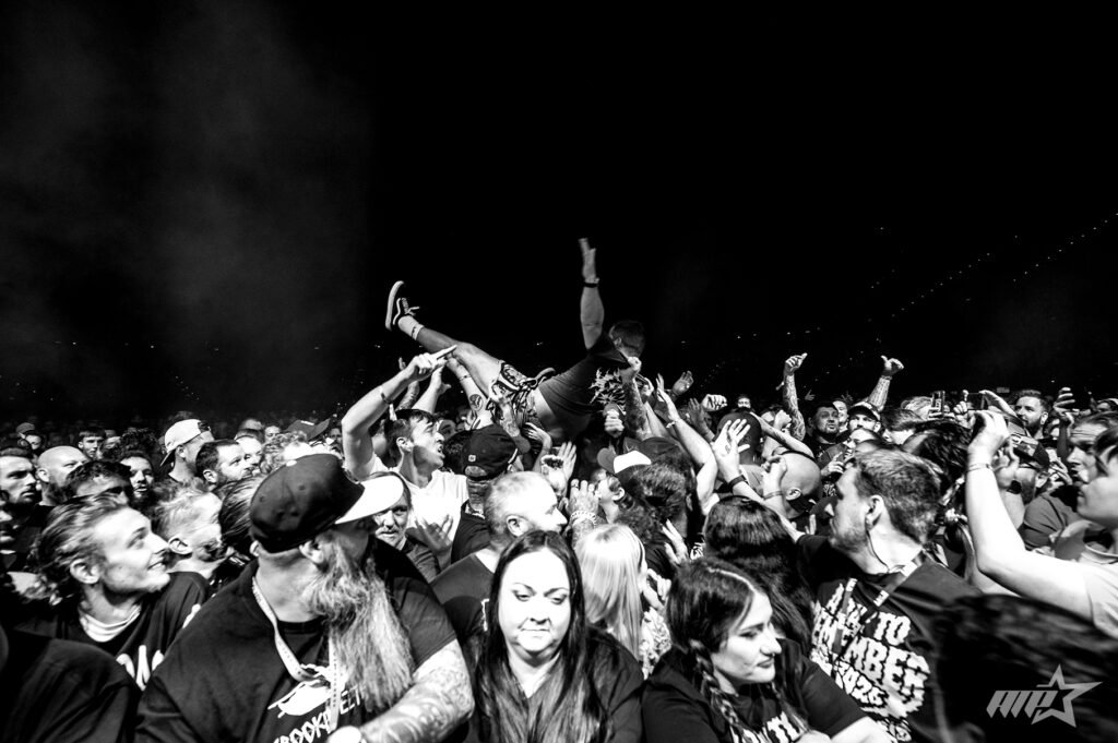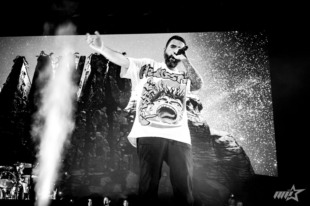 Next up were the Arena-Level Showstoppers Papa Roach. They bring big production, energy , pyro, fog, mixed with modern technology. Jacoby Shaddix reminded everyone why he’s a top-tier frontman, even diving into the crowd during “To Be Loved.” They balanced chaos with heart, spotlighting mental health and turned phones into a shimmering sea for “Leave a Light On.” A new track, “Braindead,” teased what’s next before the whole arena erupted into a singalong for “Last Resort.”