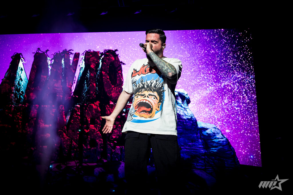 Last up, A Day To Remember, brought insane heaviness, and melodies, but also the party. Transforming the Brisbane Entertainment Centre the venue into a visual playground with a digital mountain backdrop. Kicking into “The Downfall Of Us All” . Frontman Jeremy McKinnon playing up to the media contingent to make sure they all got the perfect shot.“ Between heavier cuts from Big Ol Album Vol. 1 and playful moments like a Mario-suited T-shirt cannon and a cheeky tribute to Nickelback, the night was pure fun. The acoustic “If It Means A Lot To You” hit like a warm hug, and they closed on the euphoric “All Signs Point to Lauderdale” — TP, streamers and all.
