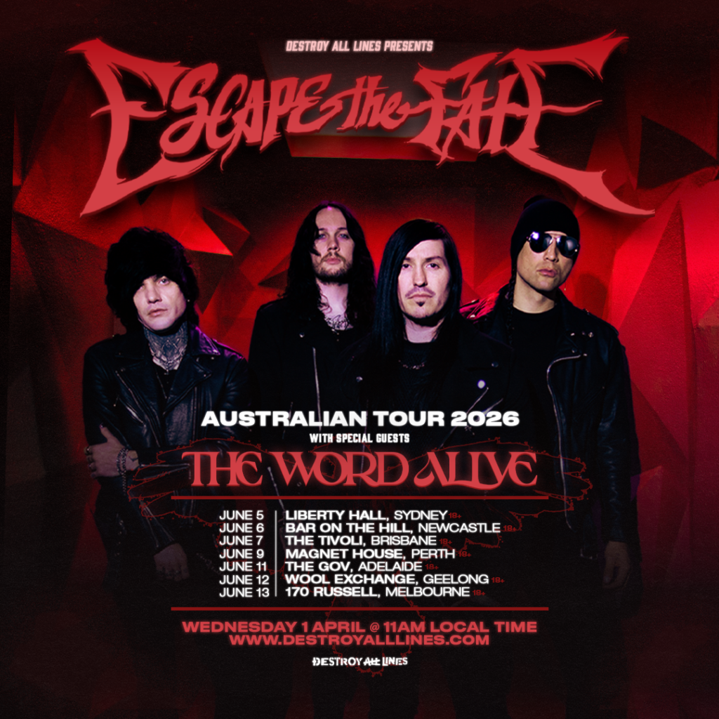 Las Vegas post-hardcore heavyweights Escape The Fate will make their long overdue return to Australia this June, bringing with them US metalcore mainstays The Word Alive – taking in every capital city and a couple of regional ones too!