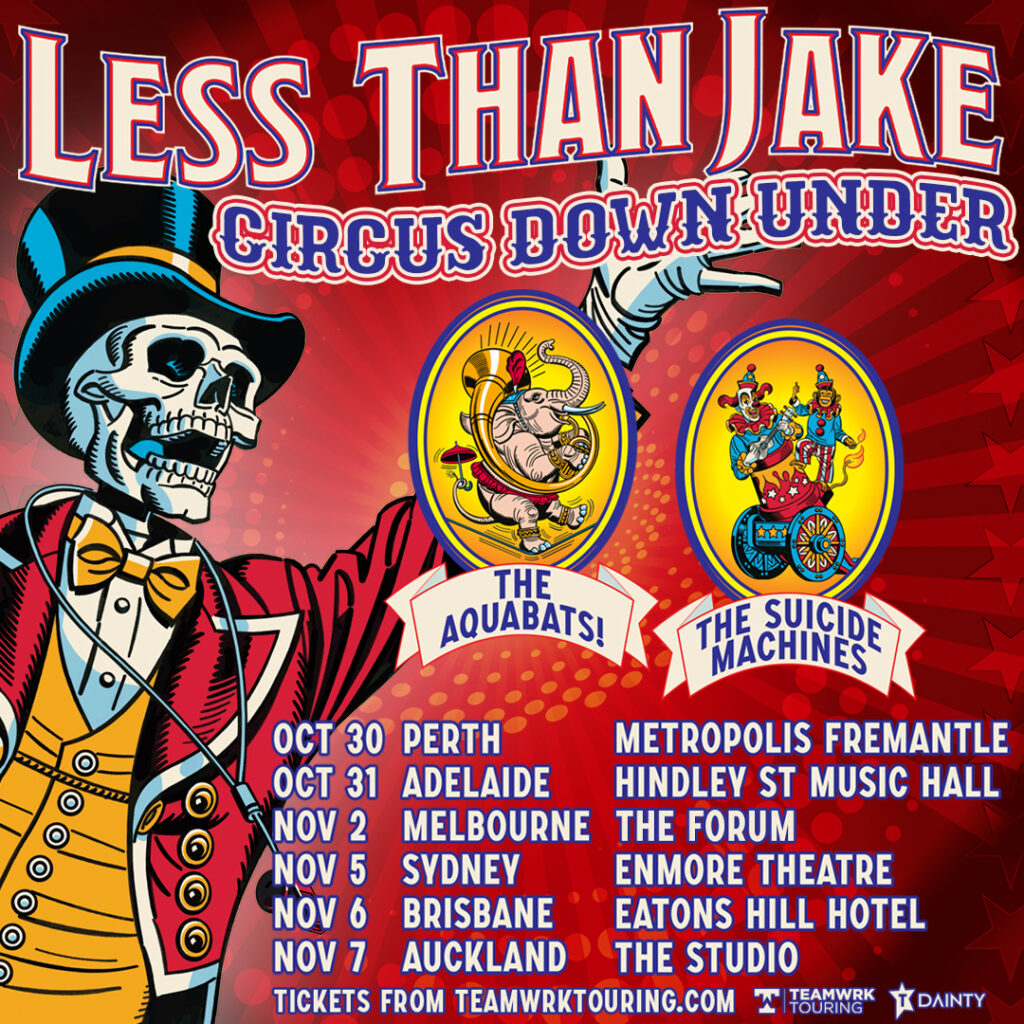 Ska-punk mainstays Less Than Jake return to Australia and New Zealand this October and November for their ‘Circus Down Under’ tour, bringing their signature mix of brass, hooks and chaos back across the country.